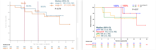 图4. 三药围术期治疗基于病理分期的EFS(左)